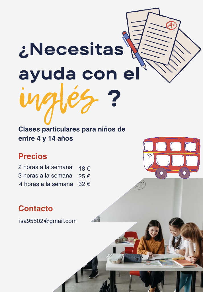 Inicio > Buscar en el mercadillo > CLASES PARTICULARES DE INGLÉS O CUIDADO DE NIÑOS